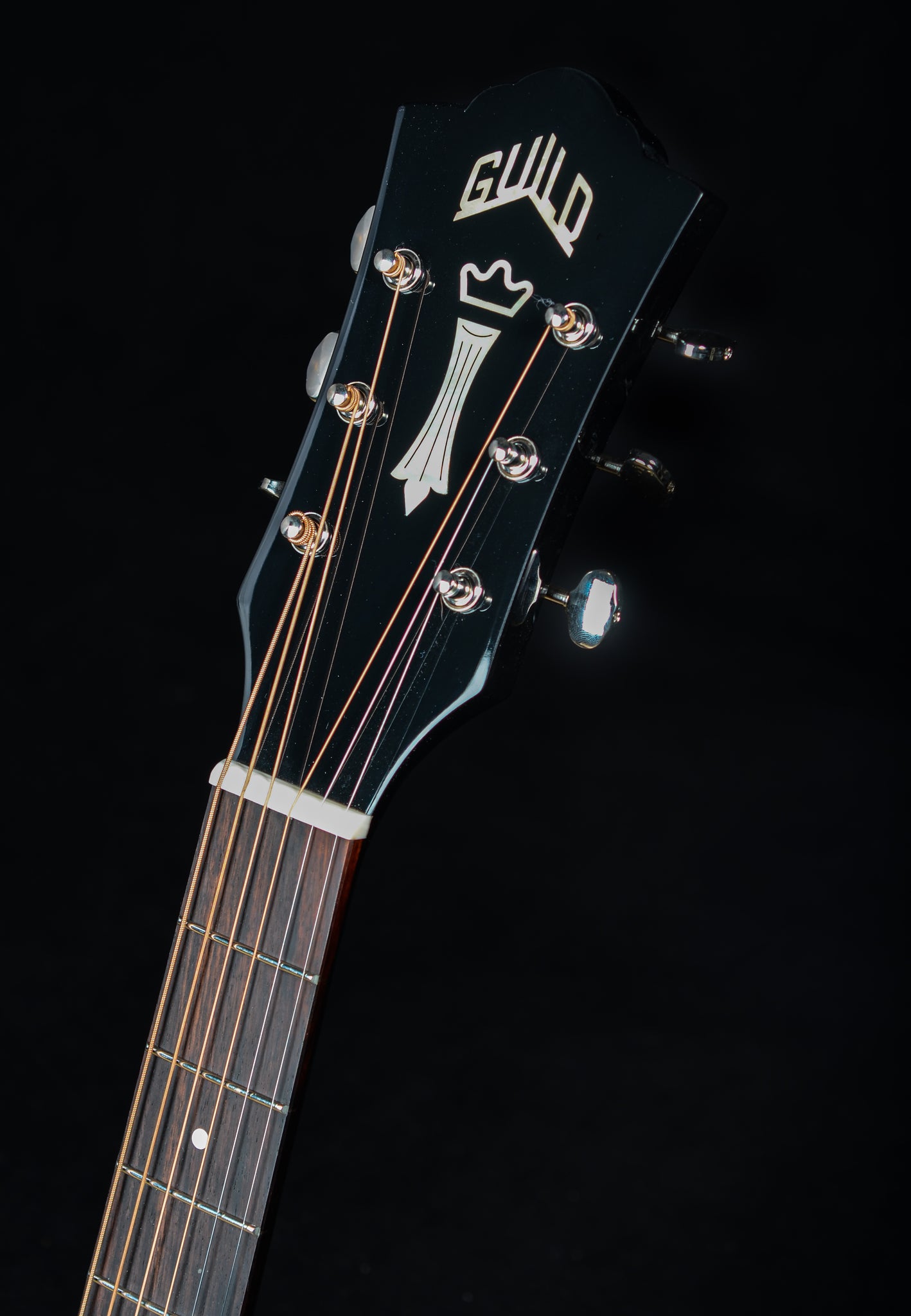 Additional premium features include Guild Vintage 18 open gear tuners with 18:1 gear ratio, Ivoroid binding, and a Fishman® GT-1 pickup with soundhole volume and tone control. A mother-of-pearl rosette and Guild’s iconic Chesterfield headstock emblem reminiscent of 1960s models complete the package. Ships with a Guild Premium Acoustic Gig Bag.
